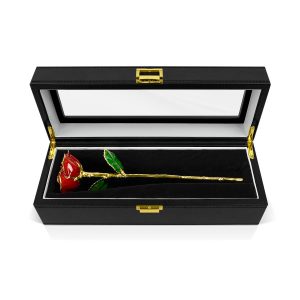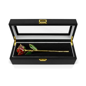Regal Burgundy Rose with Presentation Case and Glass Top