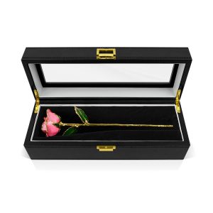 Whimsical Pink Rose with Presentation Case and Glass Top